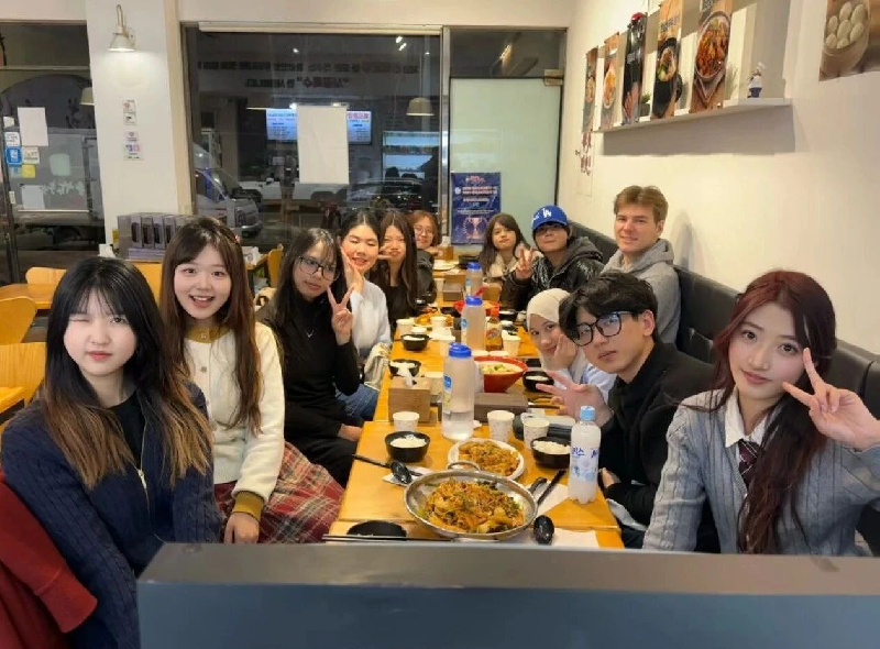 A:学校每天晚上有韩语教学一个班就8个同学,都是来自各个国家的同学,后来我们就熟悉了,墨西哥女孩邀请我去她的生日会,就这样慢慢认识了很多国际朋友,一起约着看电影逛街吃美食做蛋糕喝酒聊天,很幸运很幸福