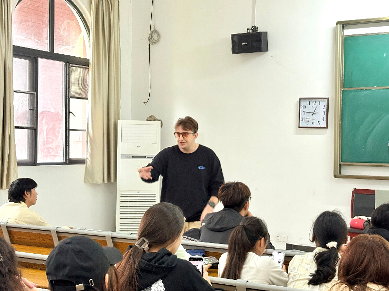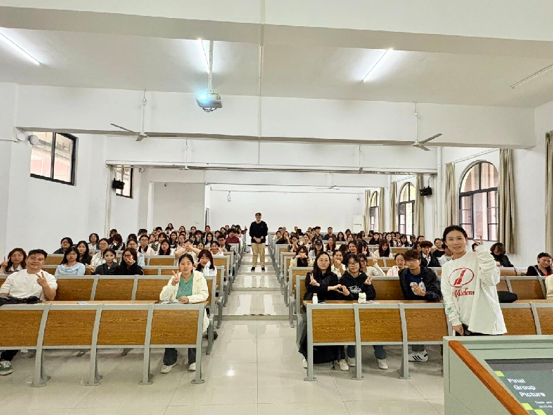 楚克老师结合PPT,生动讲述了他初识武汉热干面、逐渐被这座城市的历史与烟火气吸引的经历,带领同学们从外国友人的视角重新认识了武汉的魅力。