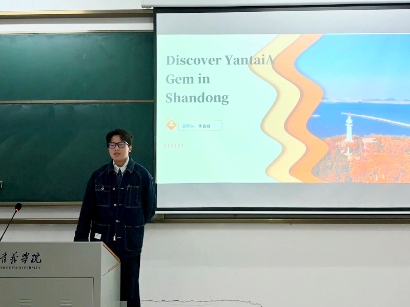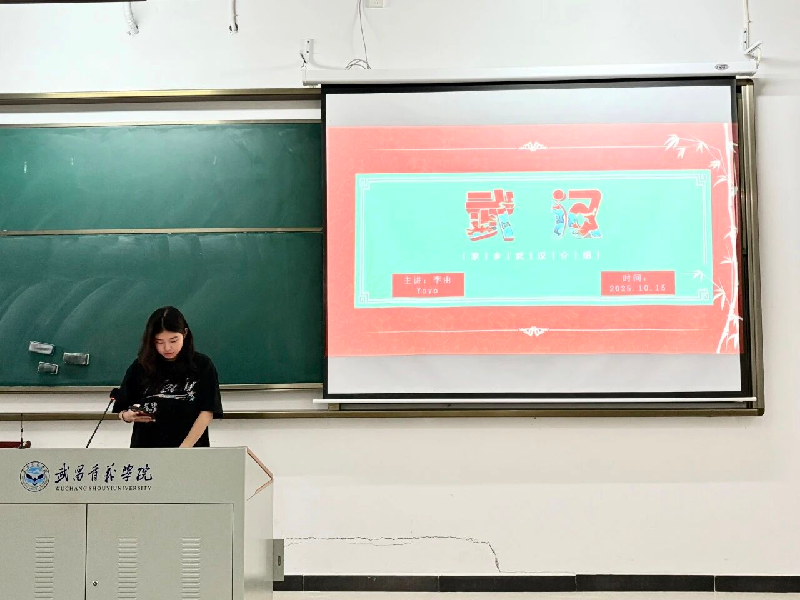 在分享环节,视传中际2502班李由从地理、历史、文化与美食四个维度展现了武汉的都市风貌与人文底蕴;视传中际2501班李宣成则介绍了家乡烟台的海滨风光与特色文化,激发了大家对这座山东城市的向往。